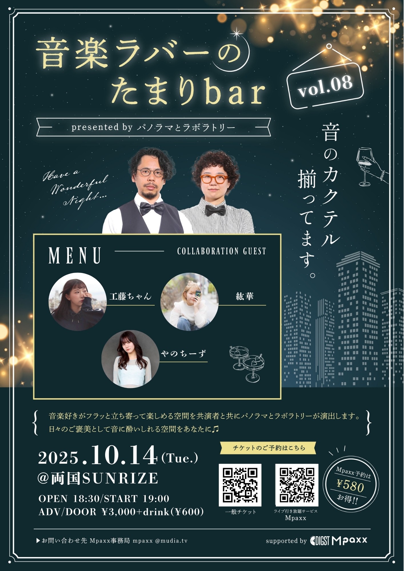 【注目Mpaxxイベント】音楽ラバーのたまりbar vol.8 (presented by パノラマとラボラトリー)を楽しもう!