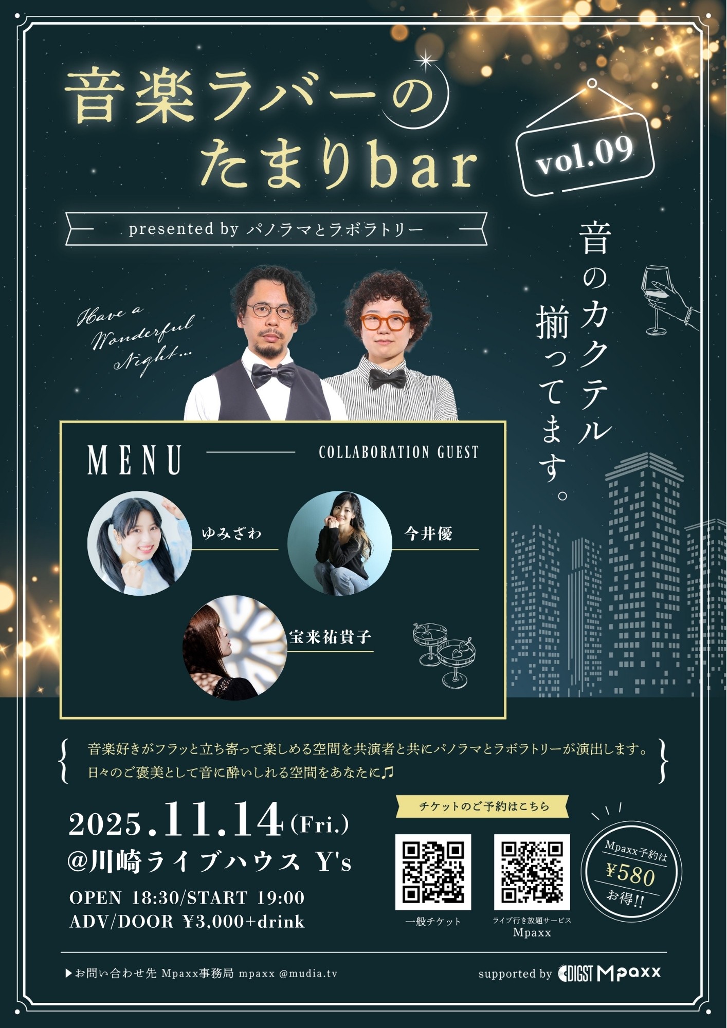 【注目Mpaxxイベント】音楽ラバーのたまりbar vol.9 (presented by パノラマとラボラトリー)を楽しもう!
