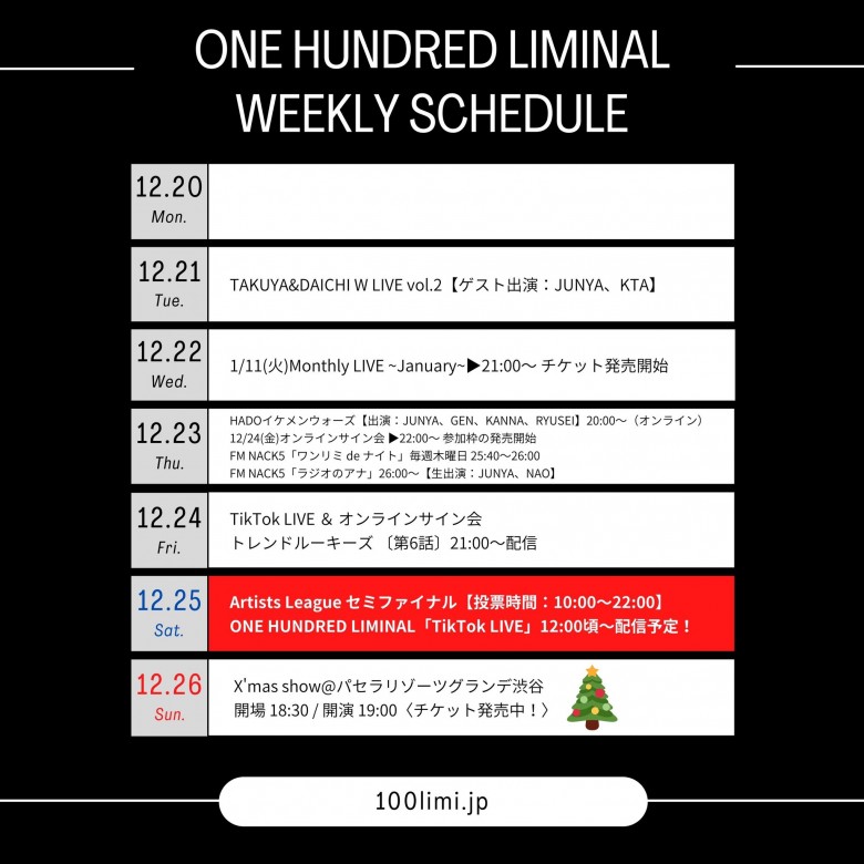 リーグの翌日、26日には渋谷でクリスマスライブも実施されます🎄❤