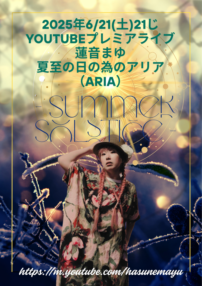 蓮音まゆ 2025年6/21(土)21じ youtubeプレミアライブ 夏至の日の為のアリア(Aria) - Summer Solstice -