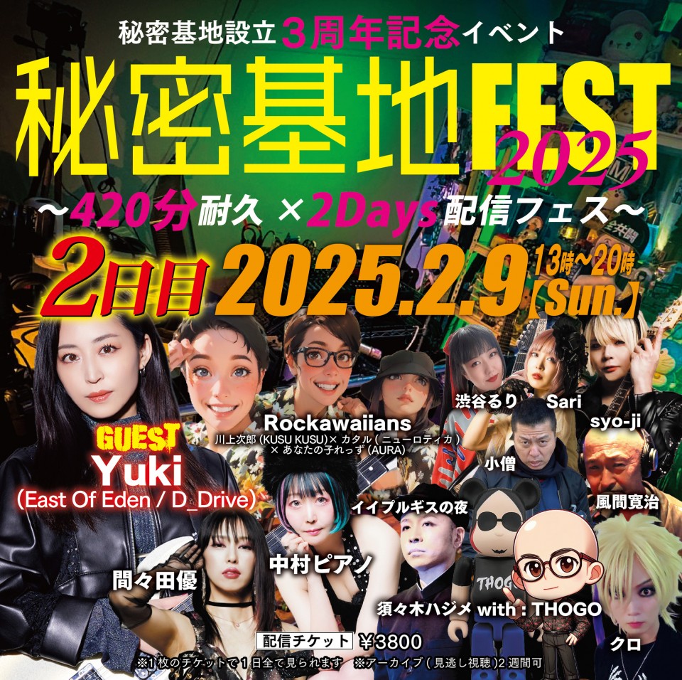 2025年2月9日(日)13時~20時生放送 『秘密基地FEST 2025』 ~420分耐久×2Days配信フェス