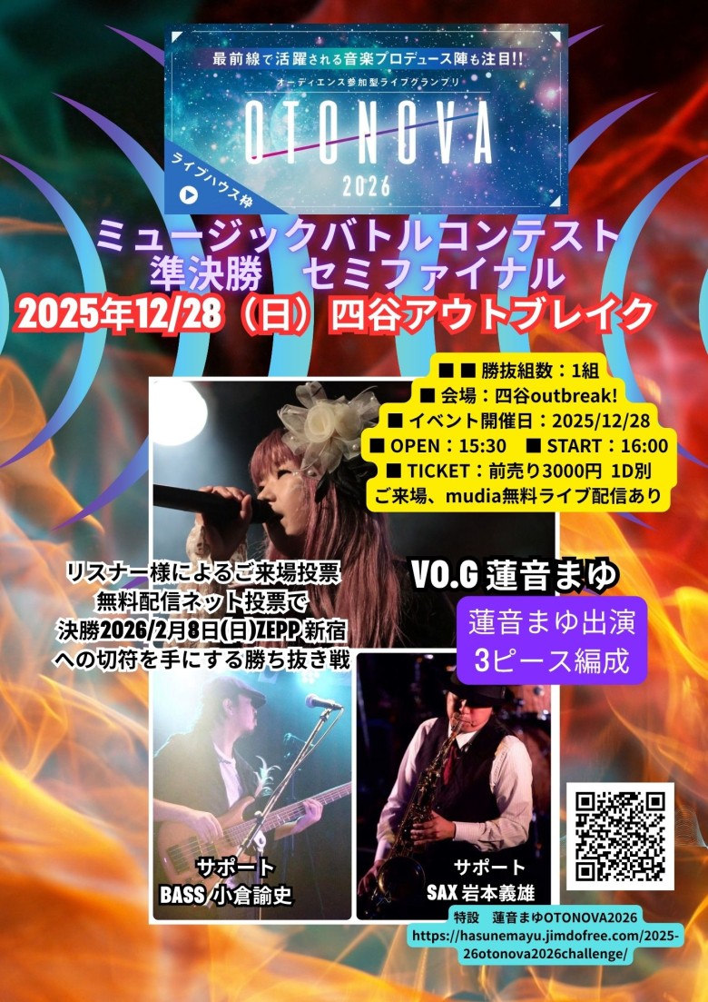 12/28(日)四谷アウトブレイク OTONOVA2026準決勝セミファイナルに出演させていただきます。