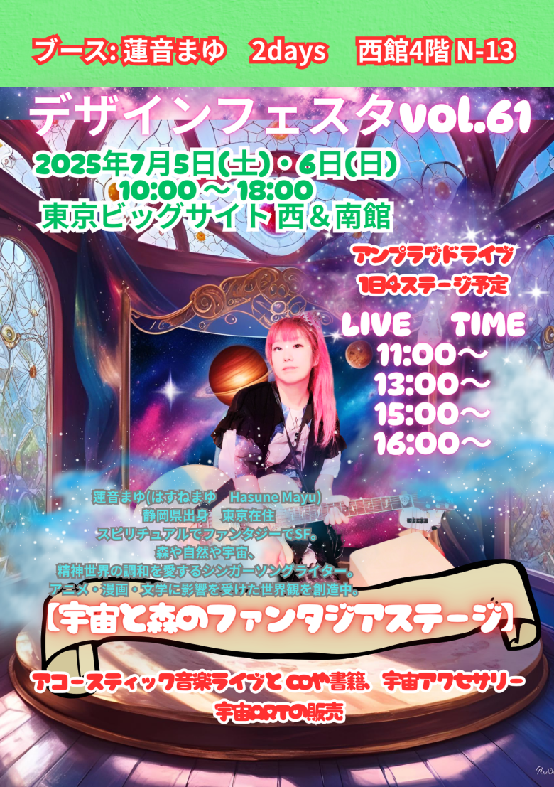 デザインフェスタ 蓮音まゆ【宇宙と森のファンタジアステージ】ギター弾き語りN-13(西館4F)