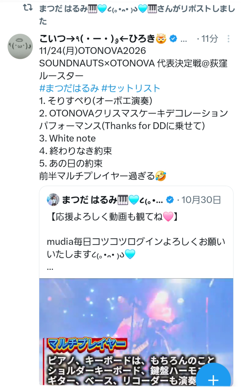 ご自愛歌姫はるみん🎹🩵OTONOVA2回戦!興奮冷めやらぬうちに私の初ライブハウス体験記等を併せて✏️