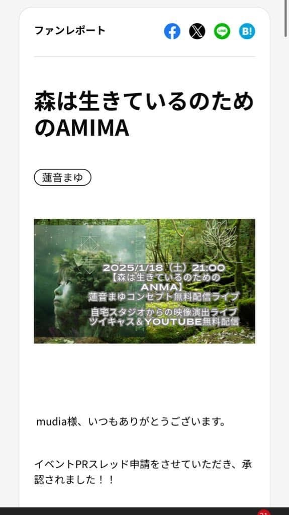 【森は生きているのためのANMA】 蓮音まゆコンセプト無料配信ライブ