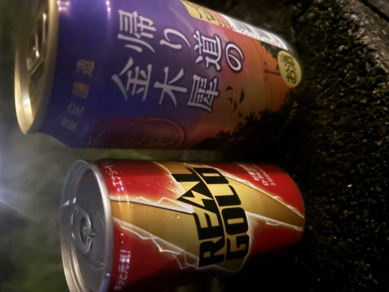友人と夜道を散歩しながら1杯。