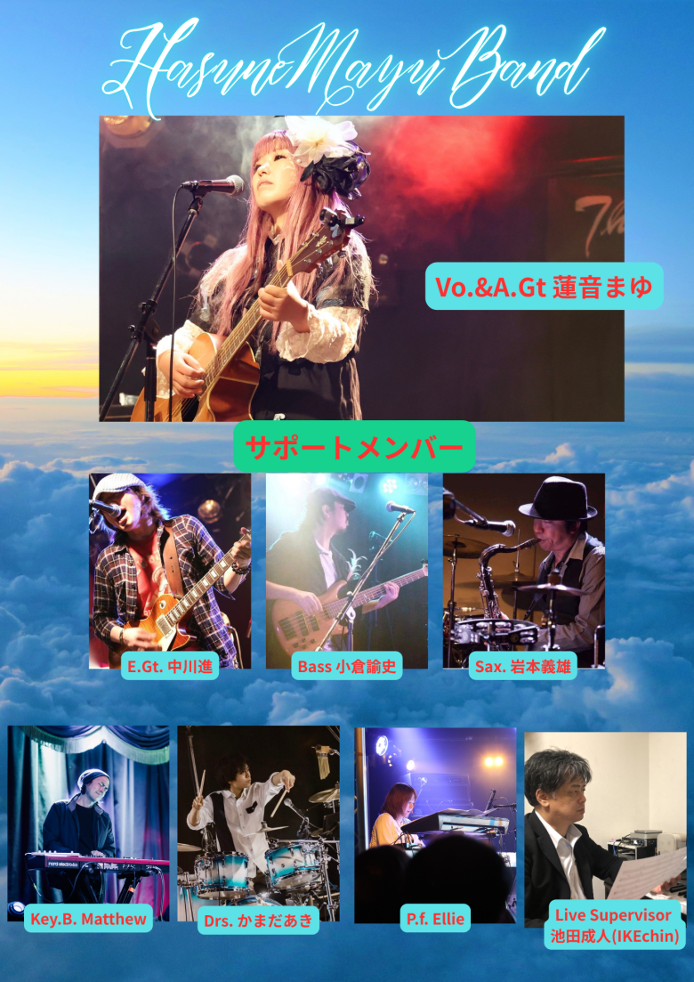 蓮音まゆ(はすねまゆ Hasune Mayu) 静岡県出身 東京在住 3月29日生まれ O型 牡羊座 東京を中心に活動中 スピリチュアルでファンタジーでSF。 森や自然や宇宙、精神世界の調和を愛するシンガーソングライター。 アニメ・漫画・文学に影響を受けた世界観を創造中。 ギター弾き語り、バンドなど様々なスタイルで 東京、神奈川を中心に活動中! 遠征ライブにも行ってます。