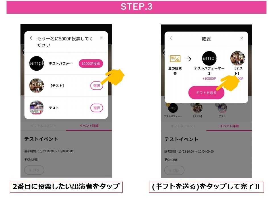 ④「AGS応援ギフト(有料ギフト)」の投票方法について