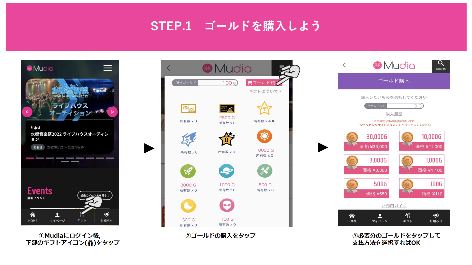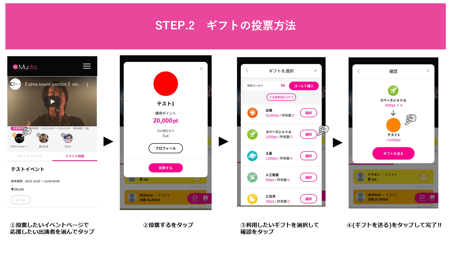 Mudiaサイトでは、有料ギフトで出演アーティストを応援することができます!!
